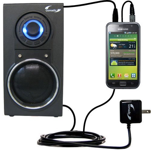 - Not only does this speaker output excellent sound quality but also includes a Dual charger that will charge both the speaker AND your Samsung Galaxy S at the same time!